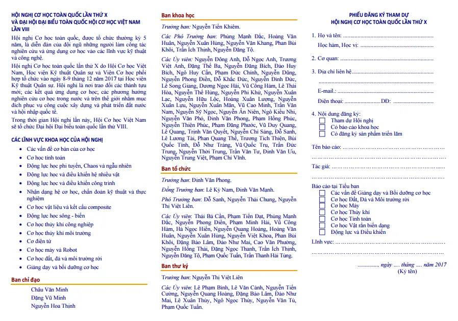 Hội nghị Cơ học toàn quốc 2017 Đăng vào 2 Tháng 6, 201711 Tháng 2, 2026 bởi adminTheo Dõi Trung tâm Đào tạo Quốc tế Trên http://cohocvietnam.org.vn/home/detail.asp?iData=1208 Tiêu chuẩn, quy chuẩn lĩnh vực thủy lợi Hội nghị Khoa học thường niên Đại học Thủy lợi năm 2017