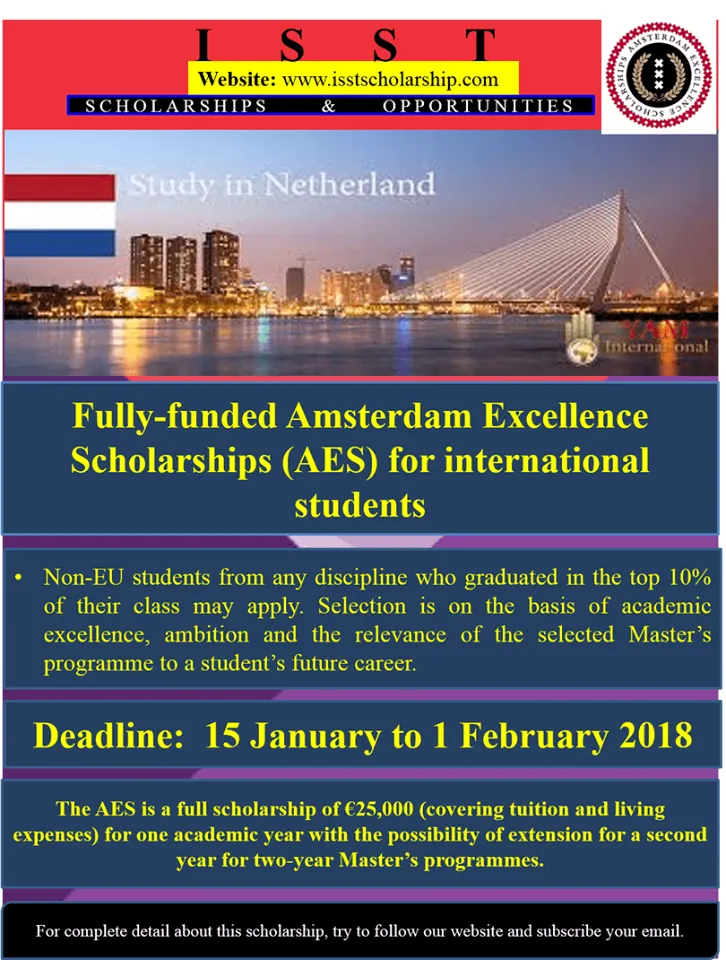 Học bổng thạc sỹ toàn phần năm học 2018 của Đại học tổng hợp Amsterdam, Hà Lan