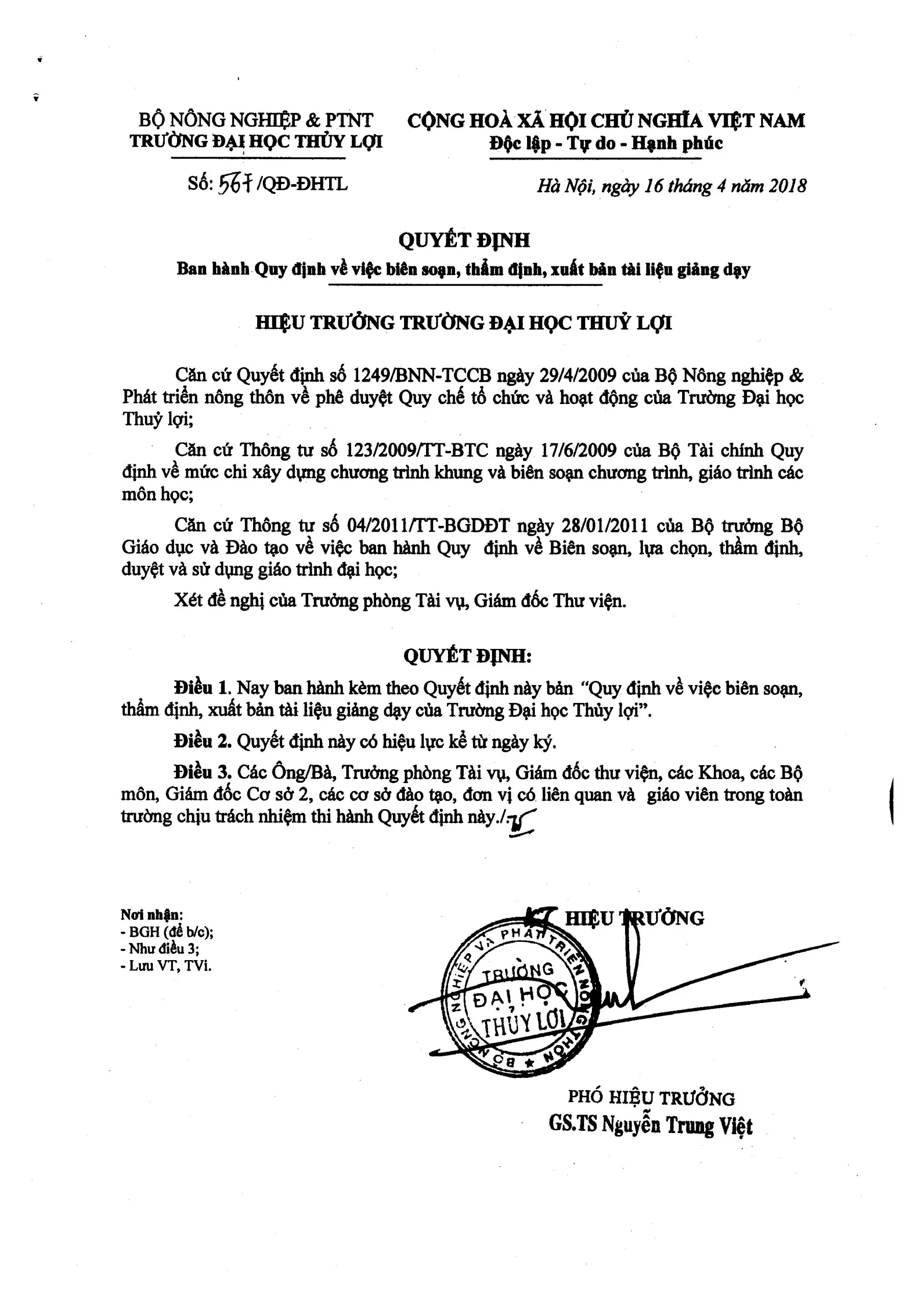 Quy định về việc biên soạn, thẩm định, xuất bản tài liệu giảng dạy Đăng vào 24 Tháng 4, 2018 bởi adminTheo Dõi Trung tâm Đào tạo Quốc tế Trên Chi tiết của Quyết định vui lòng xem dưới đây: Hai chương trình tiên tiến của Đại học Thủy lợi được trao chứng chỉ kiểm định quốc tế AUN Cảnh báo sinh viên về “Hội Thánh Đức Chúa Trời”