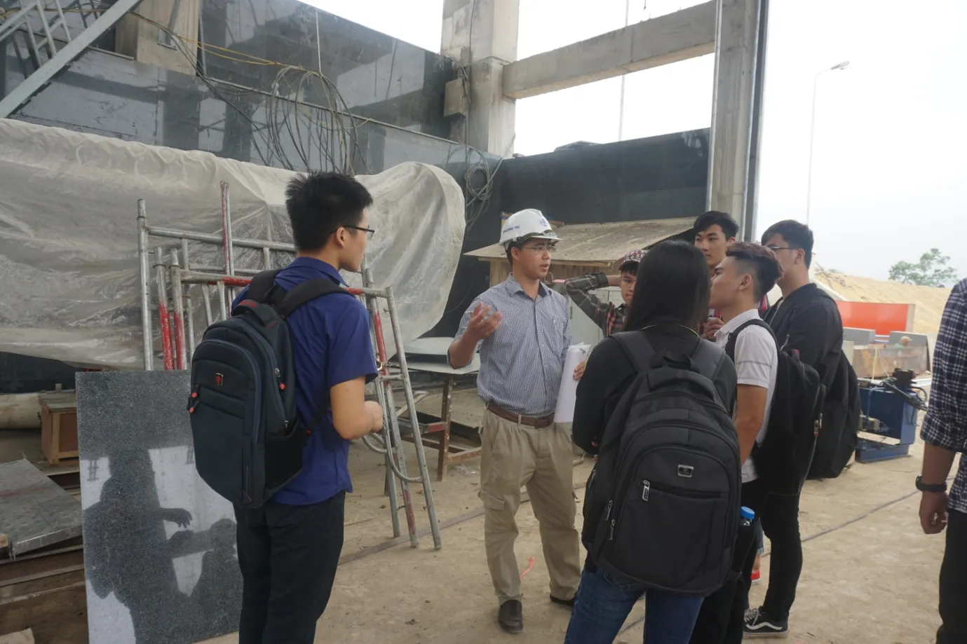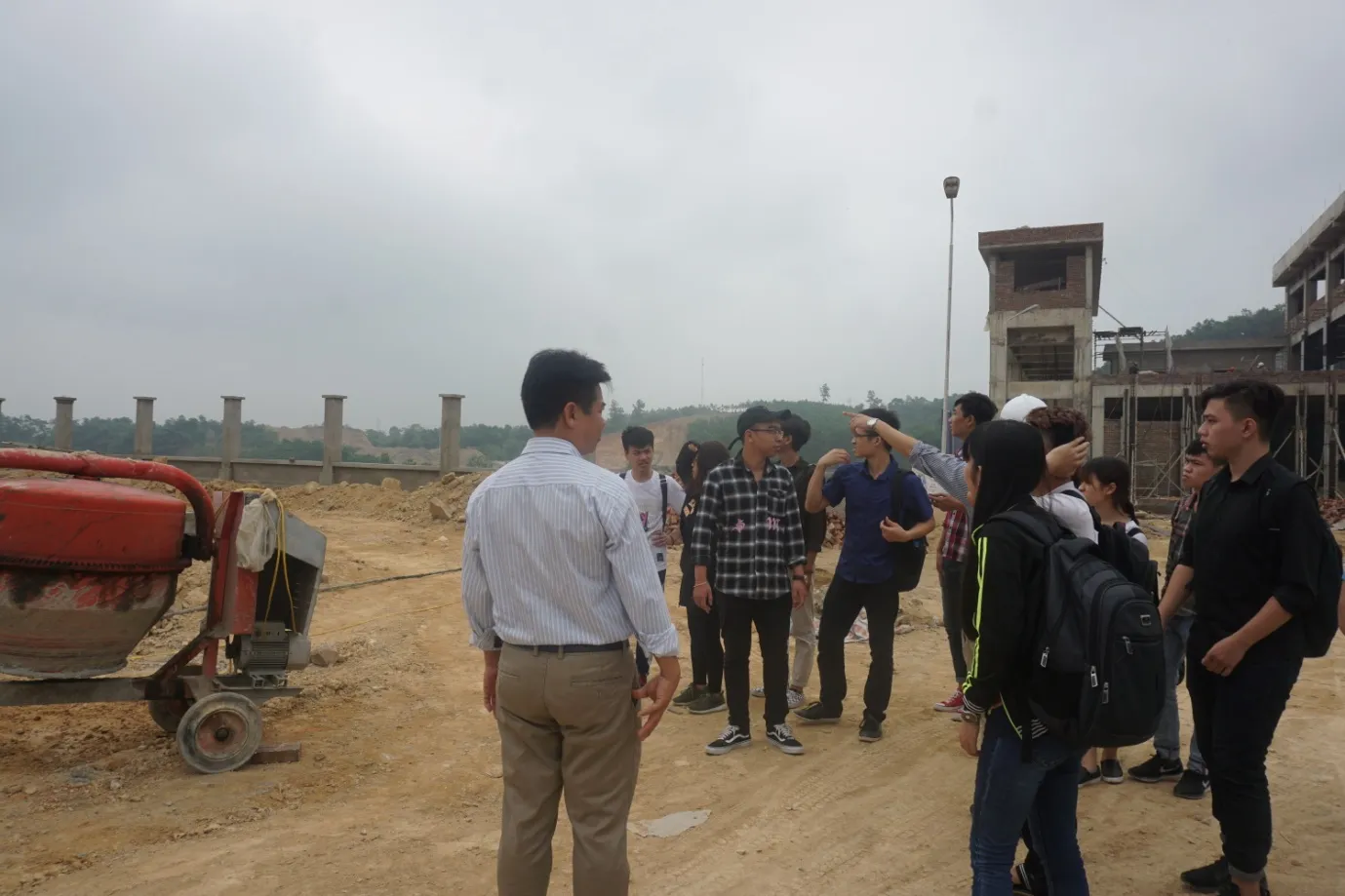Lần đầu tiên các em được nhìn thấy tận mắt hình ảnh một công trình xây dựng cùng với các hoạt động thực tế hàng ngày của các kĩ sư và công nhân công trường. Đây cũng là lần đầu tiên các em được biết đến một phần các công việc thực sự của các kĩ sư xây dựng, nghề mà các em sẽ làm trong tương lai. Các em sinh viên đã có những câu hỏi về đặc điểm công việc, về tầm quan trọng cũng như những thắc mắc đơn giản về kĩ thuật, được anh Cường và các kĩ sư thi công giải đáp tận tình.